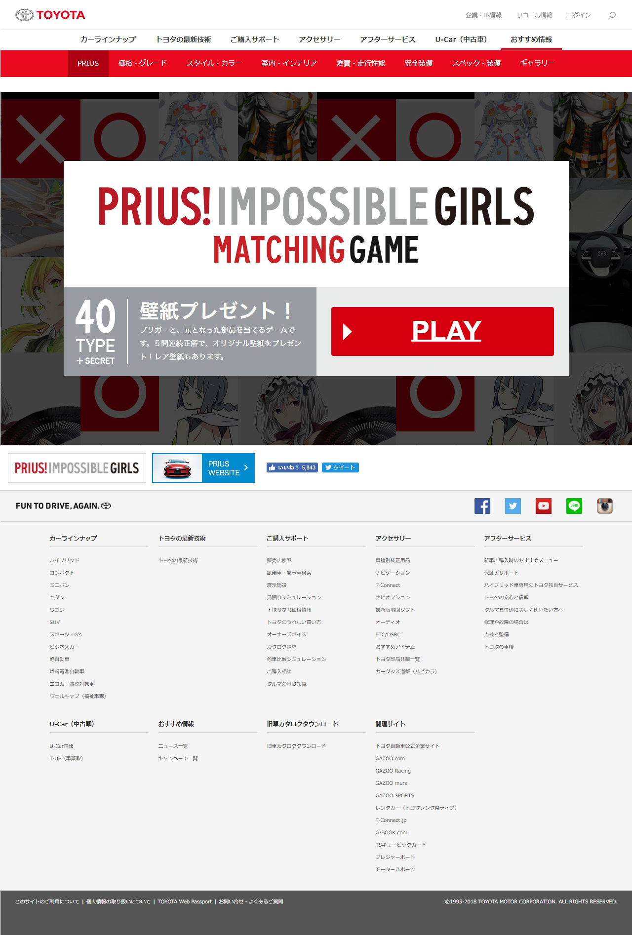 PRIUS! IMPOSSIBLE GIRLS MATCHING GAME Client / TOYOTA Front End : SMALL ENTERTAINMENT INCORPORATED NextPRIUS! IMPOSSIBLE GIRLS